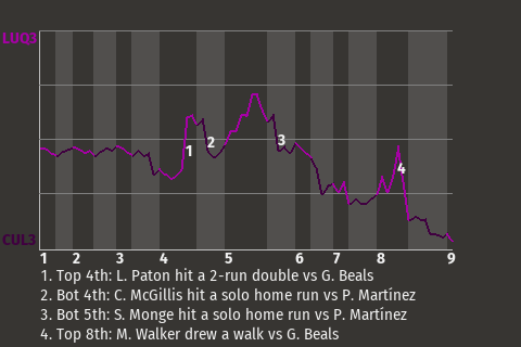 b - A. Cruz inserted as DH in the 8th