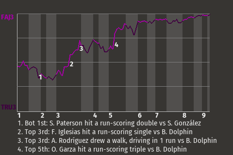 Fajardo catcher Augusto Rodríguez had a key at-bat for the Camorristas in the top of the third inning. Facing Trujillo Alto pitcher Barry Dolphin, Rodríguez drew a walk, driving in 1 run to make the score 3-1, Fajardo. For the day, he was 1 for 4 with a walk.