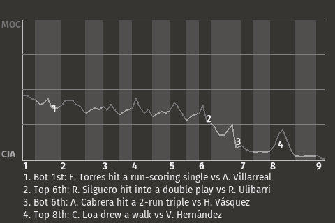 f - A. Cabrera pinch hit for E. Flores in the 6th