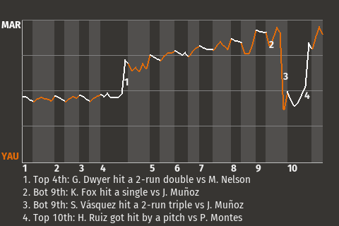 a - V. Lira pinch hit for G. Dwyer in the 10th