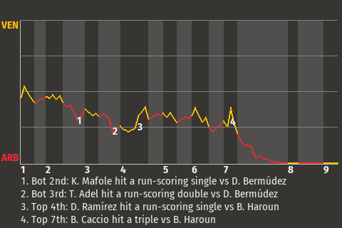 2 (0, 7th Inning off D. Bermúdez, 0 on, 0 outs; 7th Inning off A. La Chataigneraie, 2 on, 2 outs)