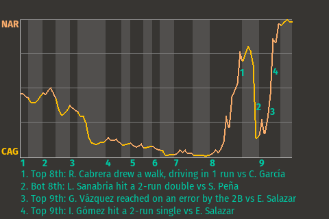 b - Á. Coronado pinch hit for R. Velázquez in the 8th