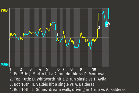 e - B. Rojas pinch hit for Á. Lumbreras in the 10th