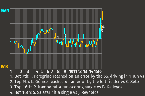 c - L. Gómez pinch hit for Á. Lumbreras in the 9th