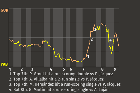 b - A. Villalba pinch hit for O. País in the 7th