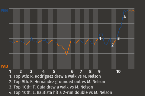 (2, 10th Inning off M. Nelson, 3 on, 0 outs)