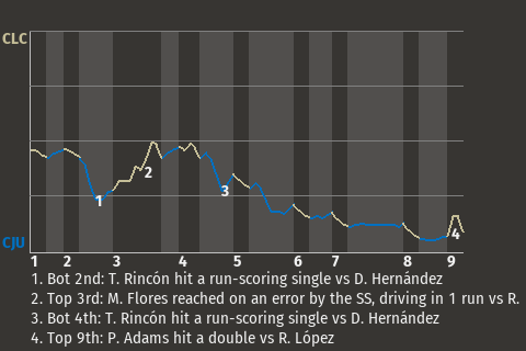 Ciudad Juarez starter Rosario López was a master of his craft. The left-hander allowed 2 runs on a miserly 2 hits over 9 innings with no bases on balls.
