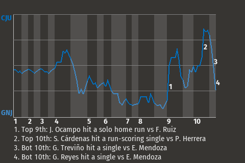 With the game tied in the top of the tenth, Cárdenas hit a run-scoring single to put his team on top.