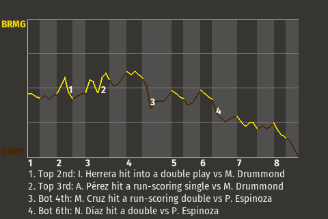 Drummond gave Derby an exquisite performance. The right-hander allowed 1 run on 4 hits over 8 innings.