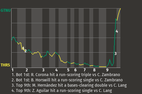 (1, 9th Inning off C. Lang, 3 on, 2 outs)